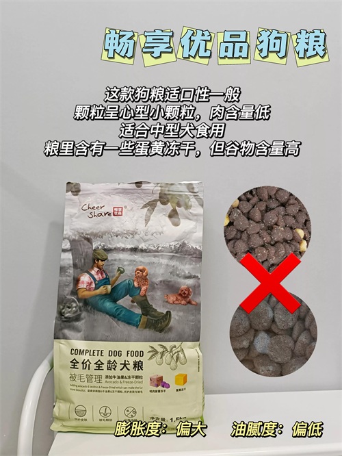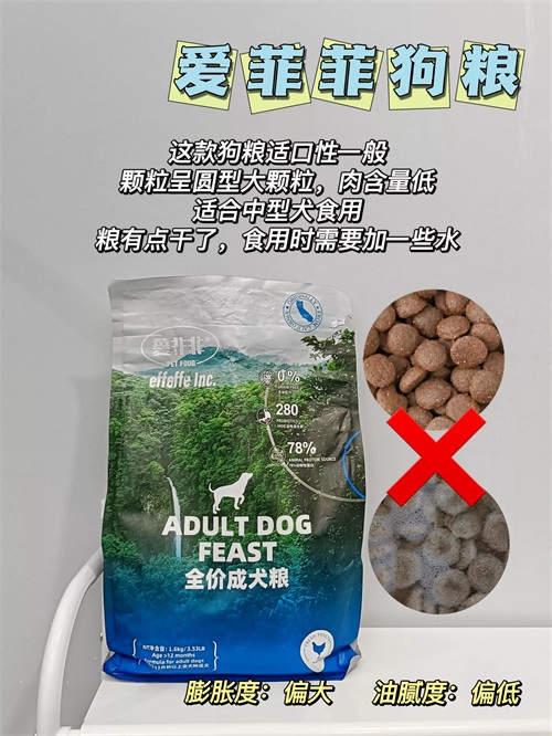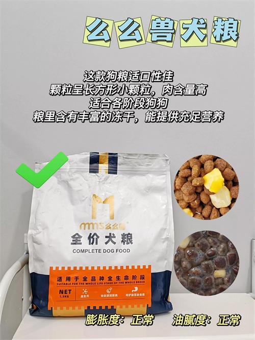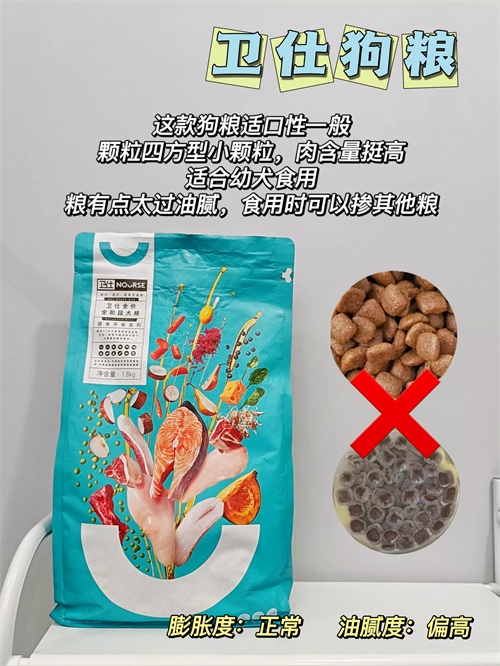 狗粮泡水后膨胀的比较大,还散开说明粮里的肉含量少,肉少就说明蛋白质低,蛋白质是狗子营养的来源