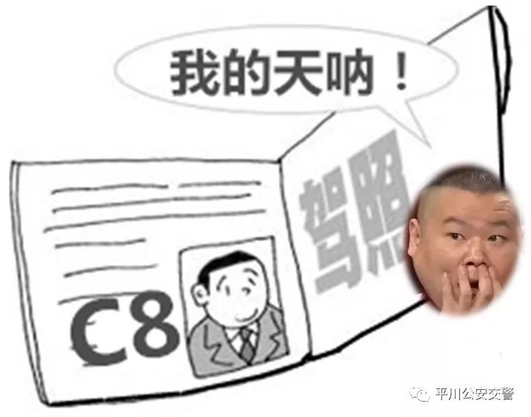 近日,平川分局交警大队城区中队民警在世纪大道执勤时,遇到一件啼笑皆非的事。民警在对一辆小型面包车进行检查时,驾驶员金某无法正常出示驾驶证,于是民警“调皮”一问:“你是C7还是C8的?”驾驶员毫不犹豫的回答“C8!”这一下不但惊了民警一大跳,就连其他车辆的驾驶员都惊呆了,C8照在哪里考的,这是个问题!