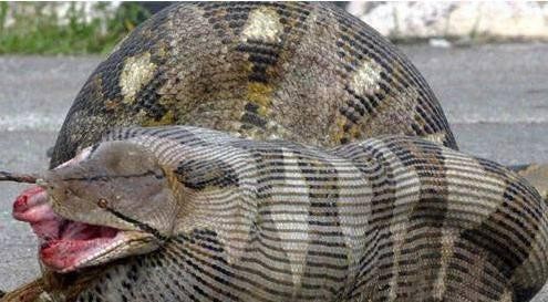 貌似在动物的大世界里,最不挑食的就是蟒蛇,没有它不吃的东西,任何东西都能给一口吞下。