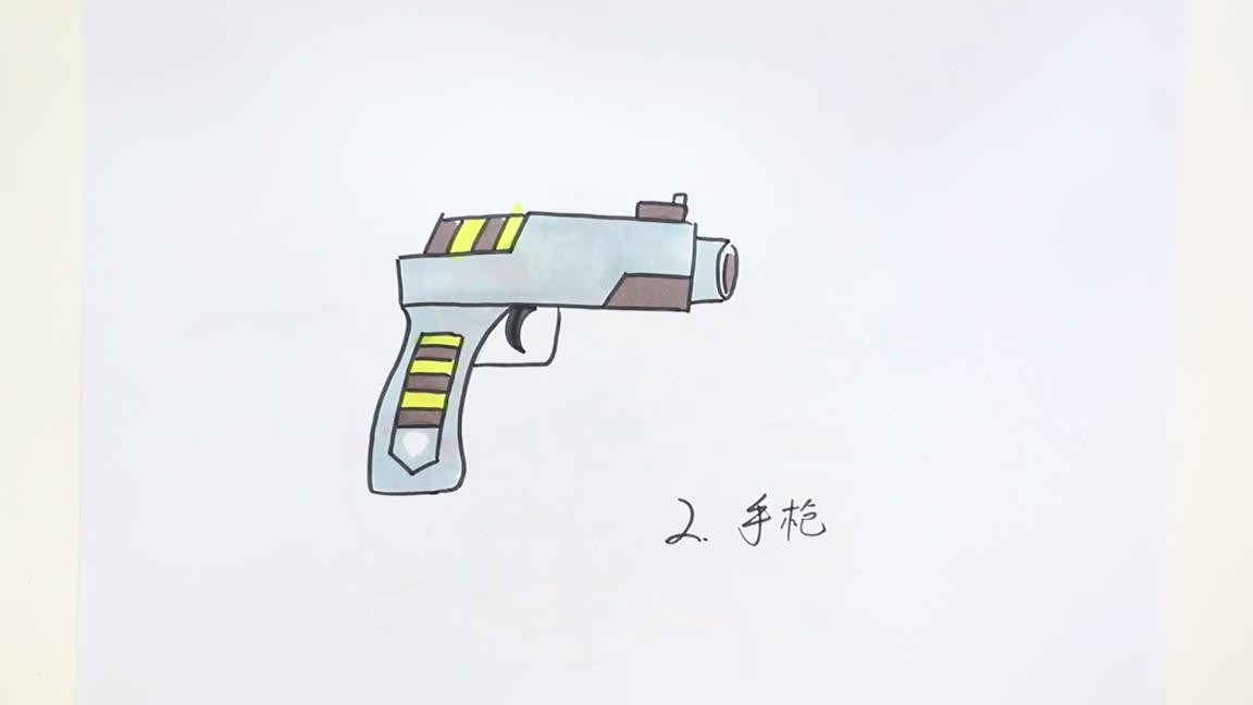 步骤1、画出形状结构,画上子弹夹和枪头;