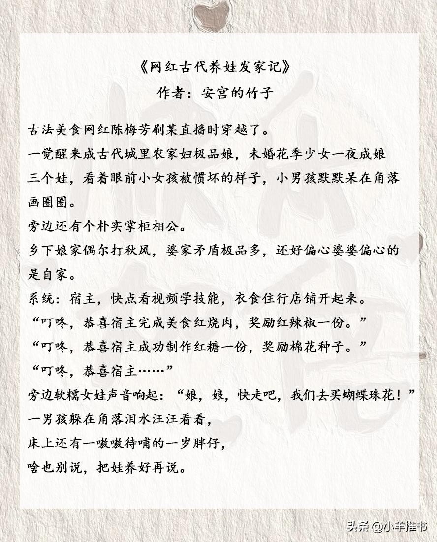 大家晚上好哇,这里是小羊推书,近期会推一些穿书养娃日常甜宠文,养小团子,