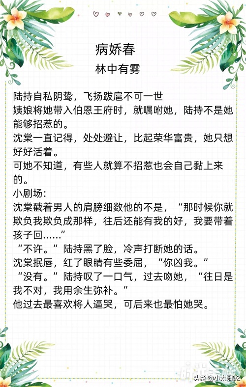 6.16日更新推文!古言甜宠文,《病娇春》《嫁给昏迷的世子之后》