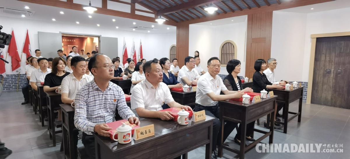 邵茂华和南通市委组织部干部教育处处长汤新明为纪念馆揭牌 丁从容摄