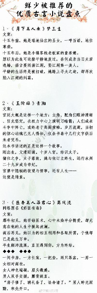 今天推荐文笔佳,情节好的优质冷门古言小说,除了那些脍炙人口的,还有这些不常被推荐的口碑之作,强烈建议不可错过!