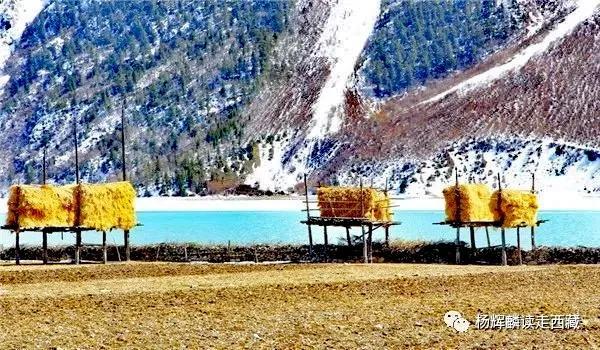 然乌湖的秋天最美,湖边村庄收割的青稞垒成树冠状点缀在房前屋后;山间的灌木或红或黄或绿,色彩斑斓,美不胜收。