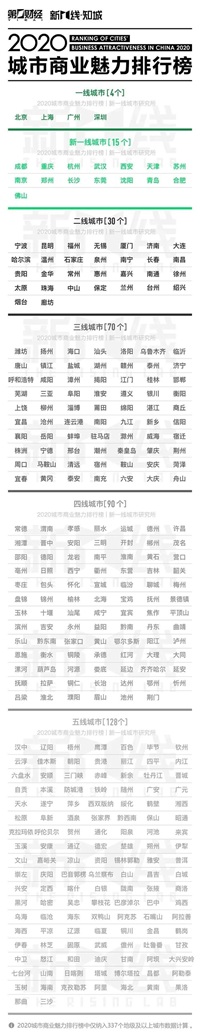 《2020年城市商业魅力排行榜》,