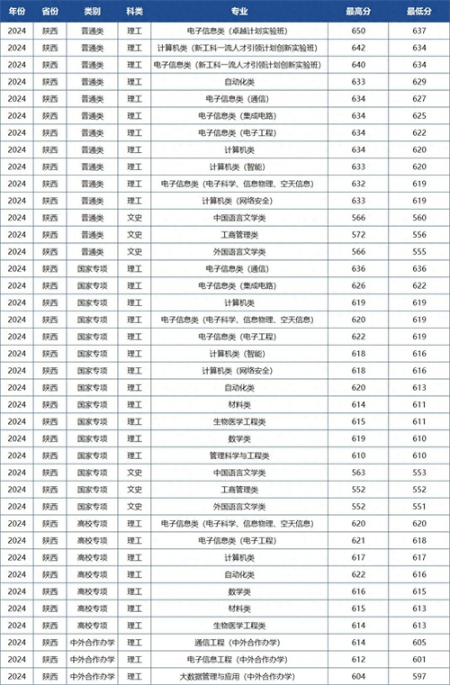 西安电子科技大学2024年在陕西各专业录取分数线汇总 2025-12-26 03:47 点击: 来源:高饶网 摘要:西安电子科技大学2024年在陕西各专业录取分数线汇总 近日,西安电子科技大学公布了2024年在陕西招生各专业最低录取分数线,以下是各专业录取分数详细情况 。 西安电子科技大学2 西安电子科技大学2024年在陕西各专业录取分数线汇总近日,西安电子科技大学公布了2024年在陕西招生各专业最低录取分数线,以下是各专业录取分数详细情况。西安电子科技大学2024年在陕西各专业录取分数线汇总 相关标签: 上一篇:图说 | 春来梅花枝头俏 下一篇:黄圣依 “空中一字马”惊呆网友 盘点“一字马”女星