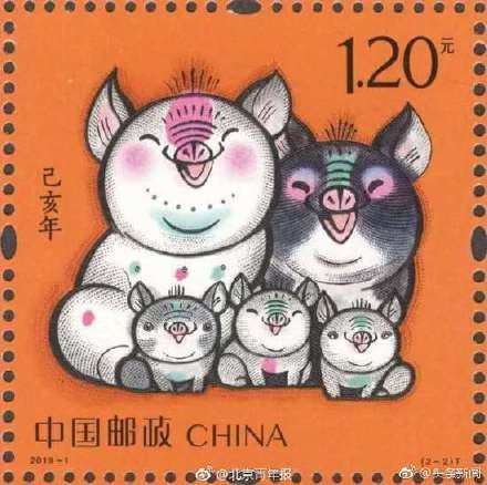 【中国邮政发行猪年邮票 内容为"肥猪旺福五福齐聚"】1月5日,中国邮政发行《己亥年》特种邮票一套2枚,全套面值2.4元。邮票由著名艺术大师韩美林担纲设计。该套邮票图案内容分别为:肥猪旺福、五福齐聚。你会买嘛