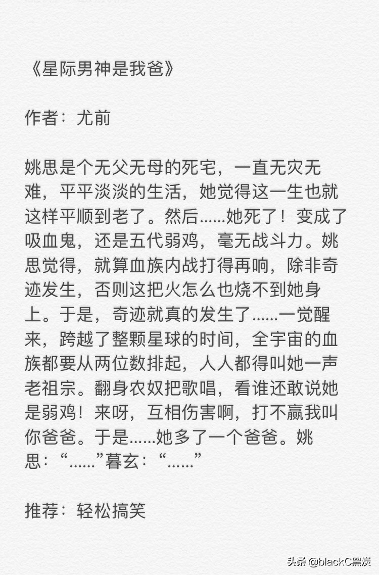 五本吸血鬼言情文推荐,你喜欢哪一位? 2025-12-29 09:27 点击: 来源:高饶网 摘要:五本吸血鬼言情文推荐,你喜欢哪一位? #小说推荐书荒互助##吸血鬼小说# 1⃣️跪求一腔热血 2⃣️星际男神是我爸 3⃣️如果逃跑没有用 4⃣️我的美好生活 5⃣️bloodxblood 五本吸血鬼言情文推荐,你喜欢哪一位?#小说推荐书荒互助##吸血鬼小说#1⃣️跪求一腔热血2⃣️星际男神是我爸3⃣️如果逃跑没有用4⃣️我的美好生活5⃣️bloodxblood 相关标签: 上一篇:每日一星——阿宝 下一篇:国际象棋前世界冠军卡斯帕罗夫被俄当局列入极端和恐怖分子名单。