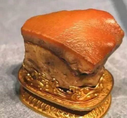 这块石头远看像极了一块东坡肉,纹理清晰,是难得的石头,价值不菲,高达1.3亿元。