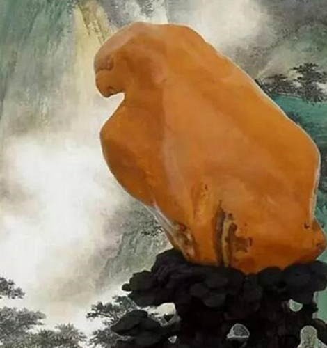 这块石头像是一个老鹰坐在石头上,这犀利的眼神,让人赞叹大自然的鬼斧神工。同样的,它的价值也超过一亿元。