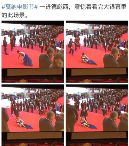 戛纳红毯摔倒的女子邢小红是谁?大尺度爆乳装否认假摔