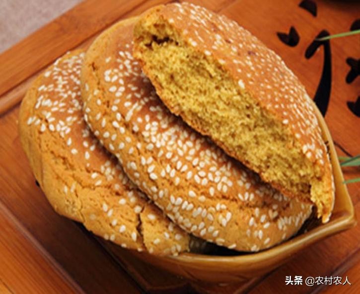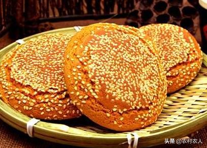 太谷饼是面制炉烤的实心饼,边与心的厚薄均匀,表皮为茶黄色,粘白有芝麻。