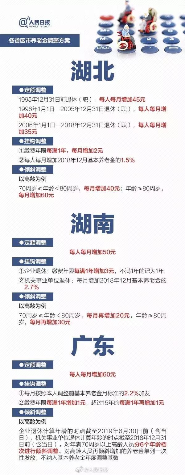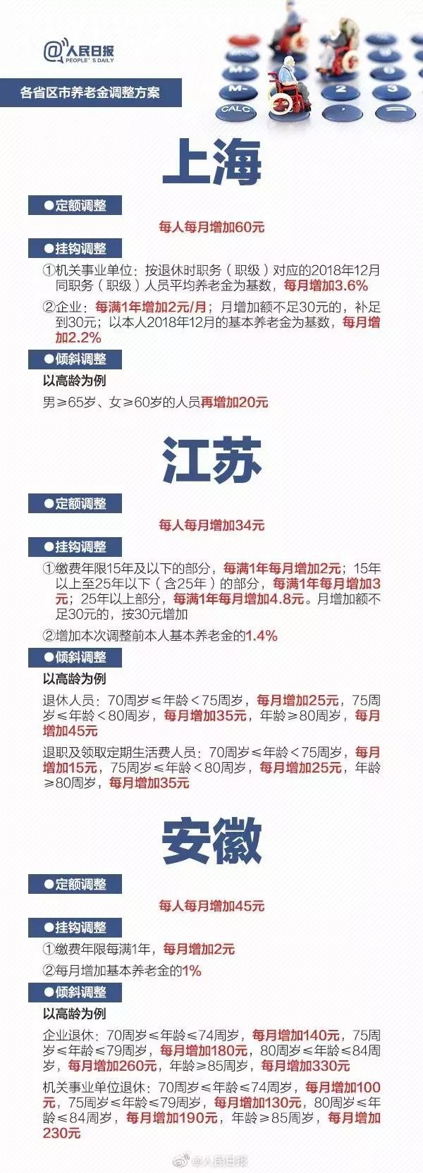 近日,多个省份确定了2019年退休人员基本养老金上调方案,总体调整水平为2018年养老金的5%左右。今年各地养老金都怎么涨?哪些人将受益?有啥新政策,能拿多少钱?各省份详细方案梳理↓↓转发周知,为咱爸妈收藏!