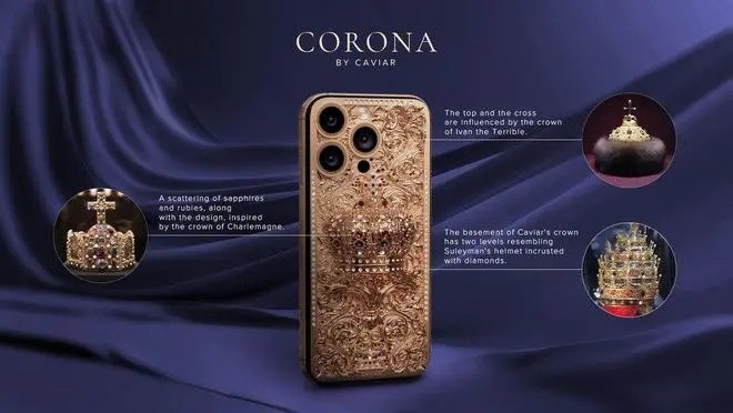 Caviar针对苹果的iPhone 16系列,最新推出opulent系列,其中最大的亮点就是在 iPhone 16 Pro Max上,定制“The Great,The Terrible,The Magnificent”款,声称设计灵感来自源自伊凡雷帝、苏莱曼大帝和查理曼大帝三位帝王的皇冠。