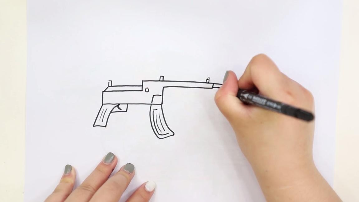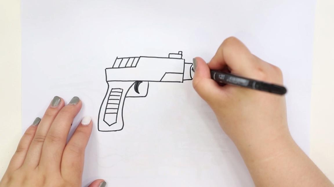 步骤1、画出形状结构,画上子弹夹和枪头;