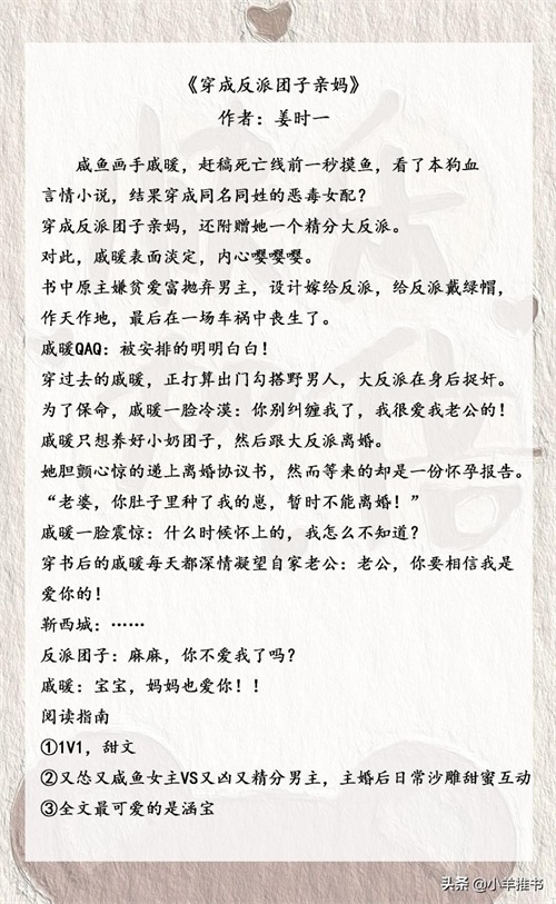 大家晚上好哇,这里是小羊推书,近期会推一些穿书养娃日常甜宠文,养小团子,