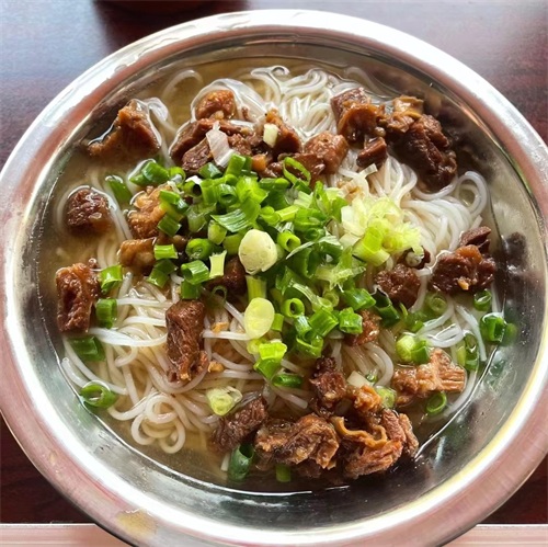 这是小编家乡美食之一,也是小编最喜欢吃的粉!!!每次回到家乡都要吃上一碗牛腩粉,从小吃到大都不嫌腻,历经十多年,仍然还是记忆中的口味。牛腩分量充足,软而不烂,有嚼劲,很入味,粉汤浓郁醇厚,牛腩汁超级香,吃完之后那个味道还一直在嘴里!米线也超级爽口的!撒上一把葱花真的是完美~