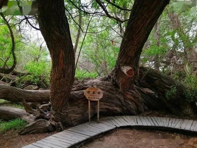 天山神木园面积700余亩,海拔1700余米,地处荒漠地带,园内植物依靠高地10余处泉水存活,该园东北边缘荒滩为古代伊斯兰传教者陵地,被人们誉为“袖珍森林”、“古树博物馆”。据地质科考分析,由于天山山脉不断隆起,山脉南麓板块断裂破碎,从此处流经的天山地下潜水涌出而最终形成古树较为集中的景区。园内分布上百棵存活上千年以上的古树,树种罕见,形态怪异,尚存部分穆斯林建筑风格夯土建筑,形成了生态、人文和地质相互融合的独特景观。著名画家张仃为天山神木园题写《巨木赞》散文诗:想巨木受日月之精华,得天地之正气,因生命之需求,不屈不挠,或死而复生,或再抽新条。风雷激荡,沧海桑田,念天地之悠悠,实为中华大地之罕物,民族精神之象征。