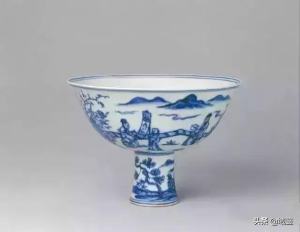 青花庭院仕女图高足碗 明宣德 故宫博物院藏