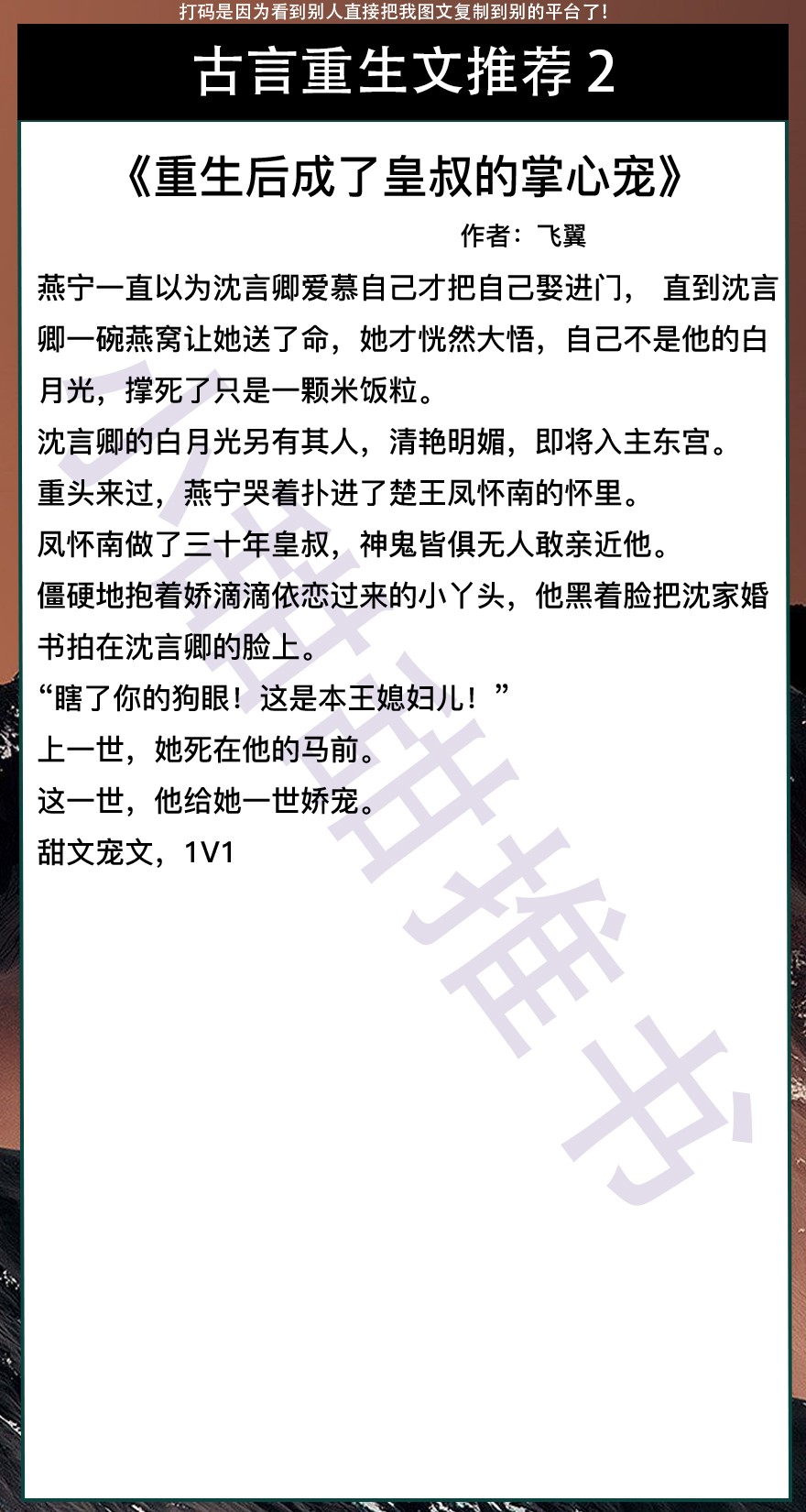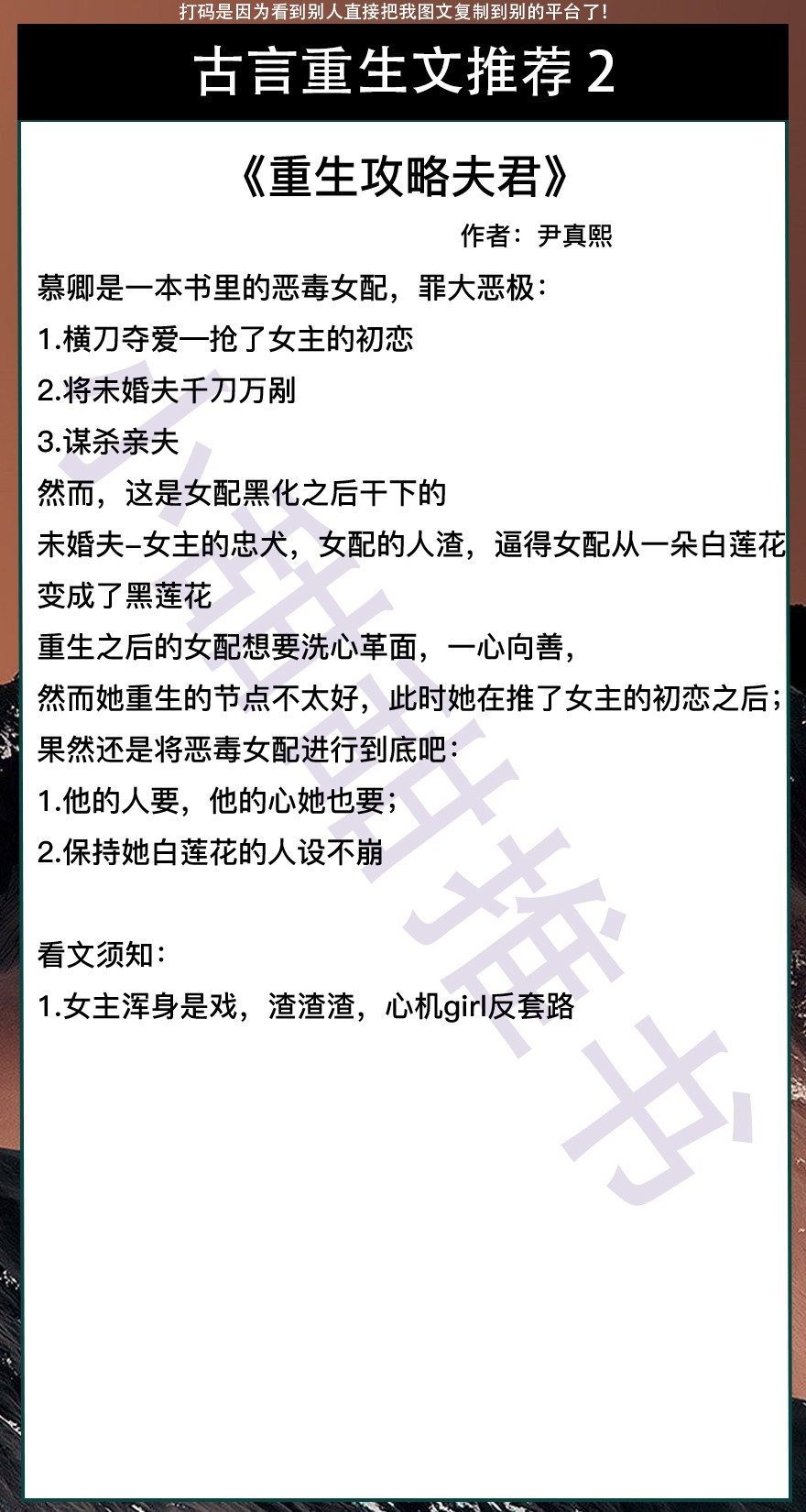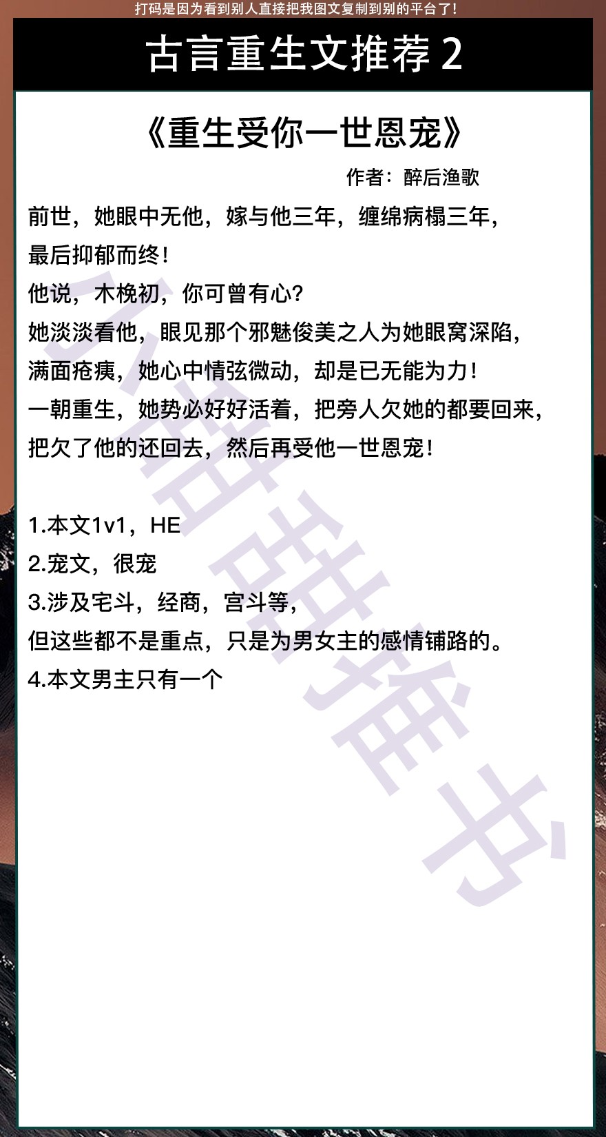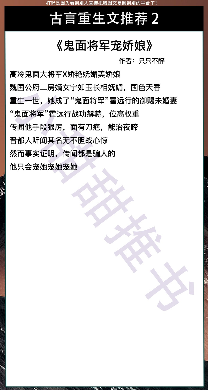 以上是本期推荐!关注我每天有不同的精彩小说推送哦!另:图片背景素材来源于网络,侵删致歉!
