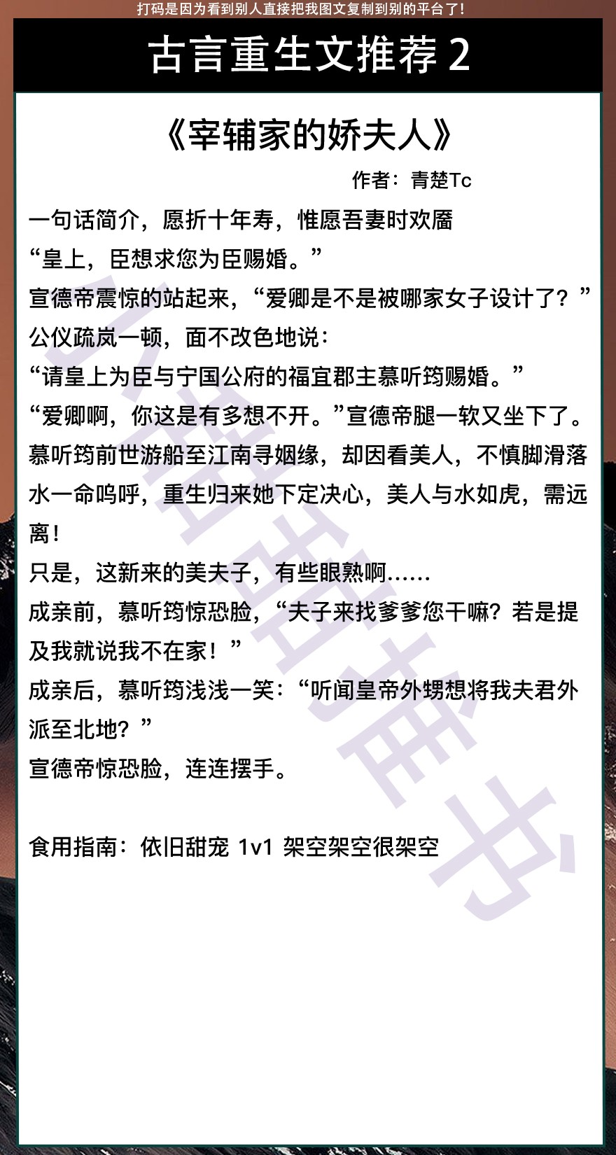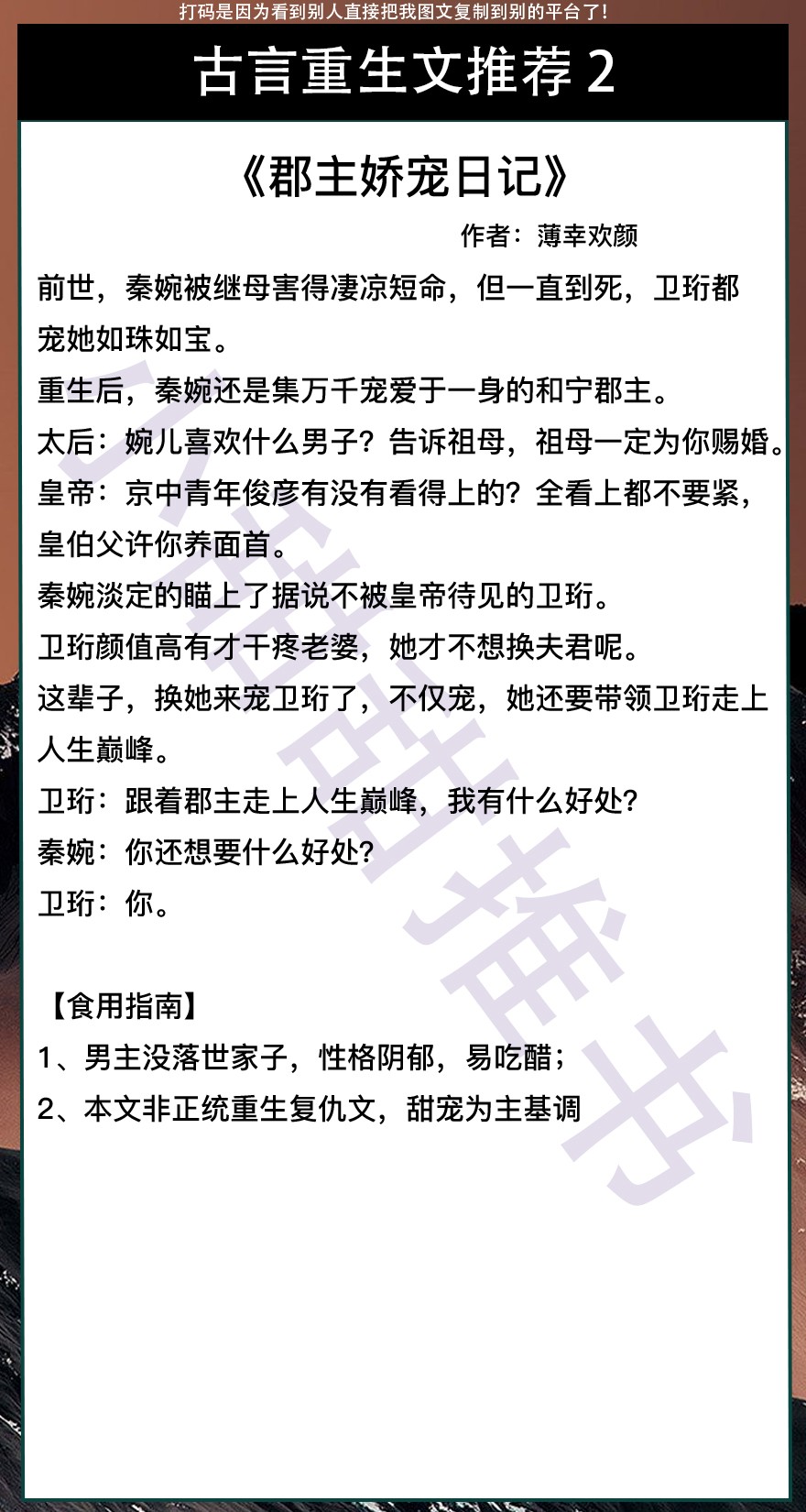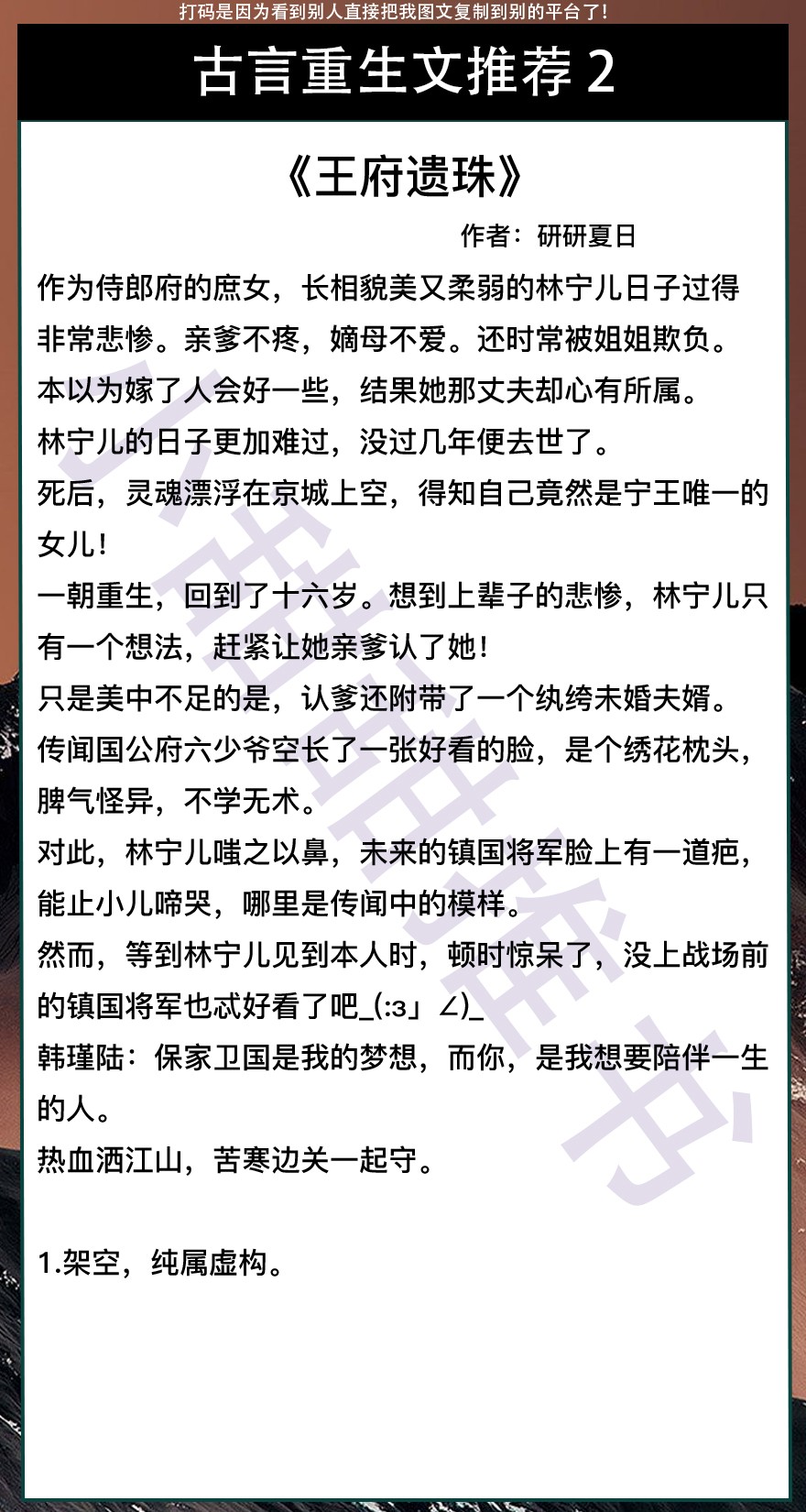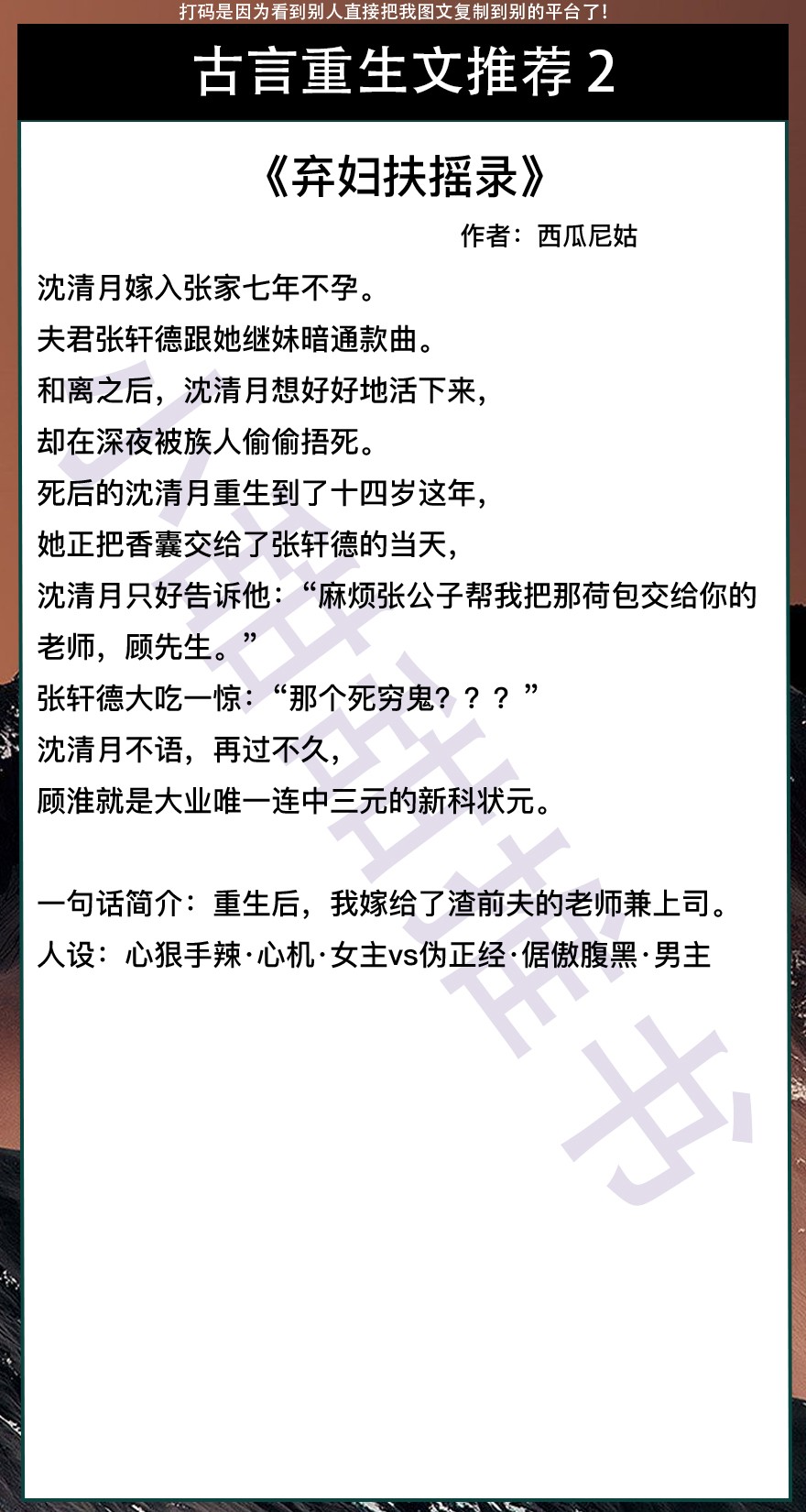 以上是本期推荐!关注我每天有不同的精彩小说推送哦!另:图片背景素材来源于网络,侵删致歉!