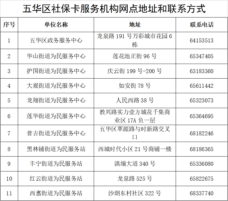 《五华区社保卡服务机构网点地址和联系方式》