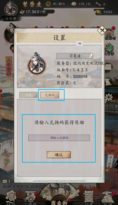 3、出现设置界面,并在【兑换码】栏内填写福利礼包码