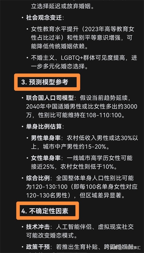 Deep seek预测20年后的中国男女比例! 2025-12-07 06:21 点击: 来源:高饶网 摘要:Deep seek预测20年后的中国男女比例! 大家认为Deepseek预测的对嘛? Deep seek预测20年后的中国男女比例!大家认为Deepseek预测的对嘛? 相关标签: 上一篇:UNINE组合正式成团!李汶翰第一李振宁第二 下一篇:埃及新国际机场开始试运营