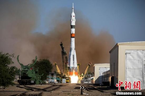 图为“联盟MS-14”飞船在哈萨克斯坦拜科努尔航天发射场发射。