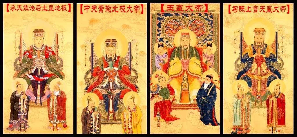 玉皇大帝执掌天上枢机总政,统辖天神、地祗、人鬼,总管三界、十方、四生、六道的一切阴阳祸福。紫微北极大帝执掌天地经纬,以率日月星神,制约四时气候变化,能乎呼风唤雨,役使雷电鬼神,为万象之宗师,万星之教主。勾陈黄天大地协助玉皇大帝执掌南北两极和天地人三才,统御众星,并主持人间兵革之事。后土皇帝祇效法玉帝,执掌阴阳生育,万物生长与大地山川之秀。 四帝被称为“四御”
