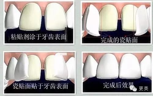 贴个薄片:牙齿贴面,只需把牙齿表面磨掉一点点,甚至不磨,贴上白白的一层薄片,牙齿看起来就很洁白。