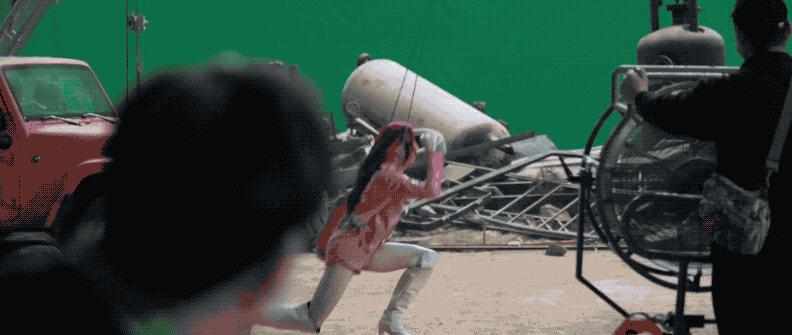 另外,娜然本身原来做过模特,有一定的时尚表现 力,给她设计一些腿法的动作,可能会比较有特色和表现力,跟冯宝宝以刀法为主的会有一个很强的对比。她去劈开徐三控物术飞过来的那些大石块、汽车,所以给她设计了空中三连踢,就是踢、翻、砸这种,以腿法为标志性的动作,让娜 然去练习,这些动作都是她自己来完成。