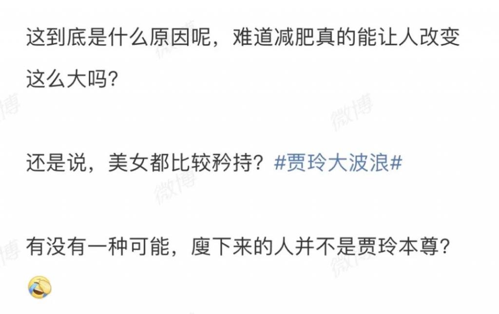 更离谱的,还有人说我们看到的已经不是贾玲本尊,而是 " 假玲 "。