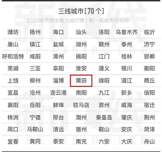 莆田再列三线城市!