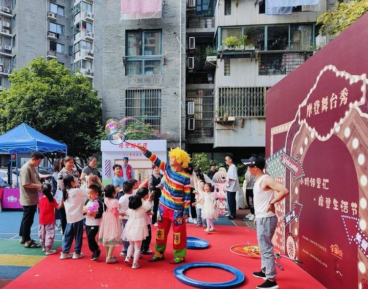 除了李家桥社区的文艺达人们舞台表演,社区还邀请了专业演员开展互动表演,魔术秀、泡泡秀、气球秀让大朋友小朋友们都目不暇接。