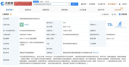 每经AI快讯,天眼查App显示,近日,琼海启明星辰信息技术有限公司成立,法定代表人为朱向东,注册资本1000万元,经营范围含网络与信息安全软件开发、网络设备制造、网络技术服务、互联网安全服务等。股权全景穿透图显示,该公司由北京启明星辰信息安全技术有限公司全资持股,后者由启明星辰间接全资持股。