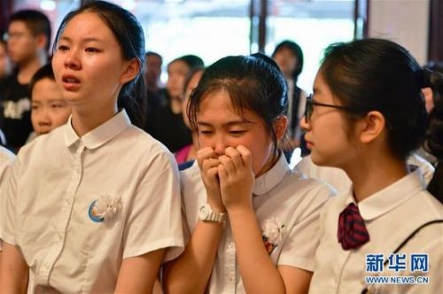 7月21日,在厦门六中音乐老师高至凡的追思会现场,他的学生流泪送别自己的老师。新华社记者魏培全摄