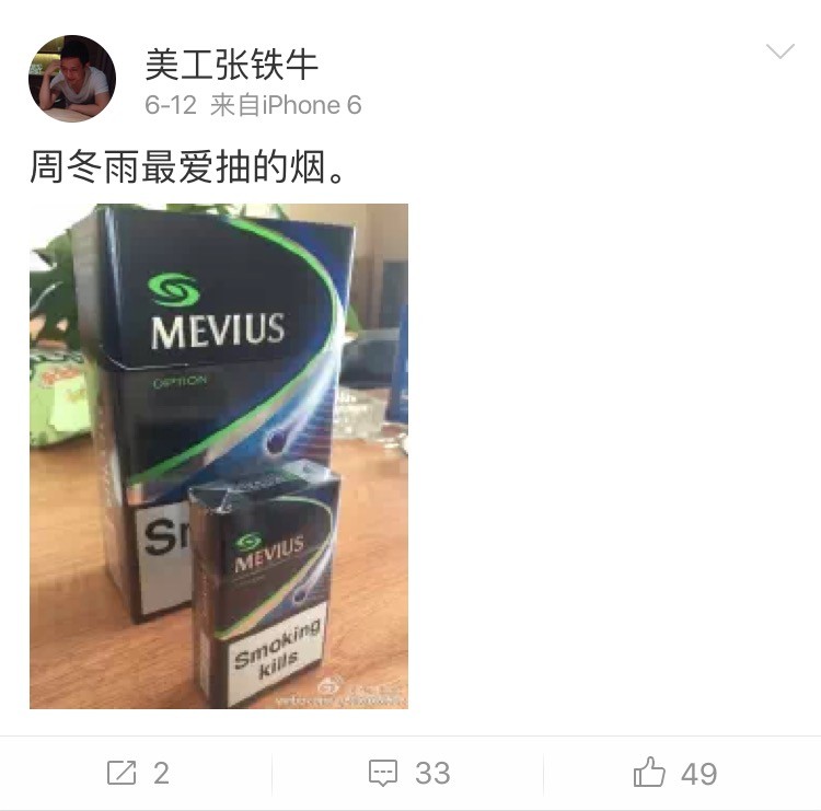 但是目前有媒体人爆料周冬雨其实是抽烟的,而且最爱这款女士香烟。