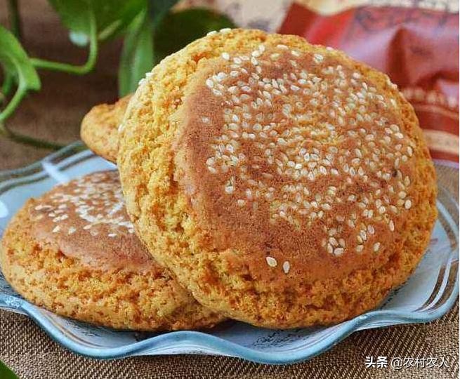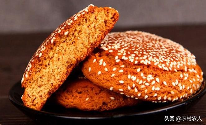 太谷饼是面制炉烤的实心饼,边与心的厚薄均匀,表皮为茶黄色,粘白有芝麻。