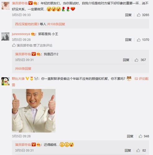 郭冬临微博示范自我介绍,挨个回复网友评论被赞暖心