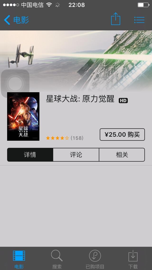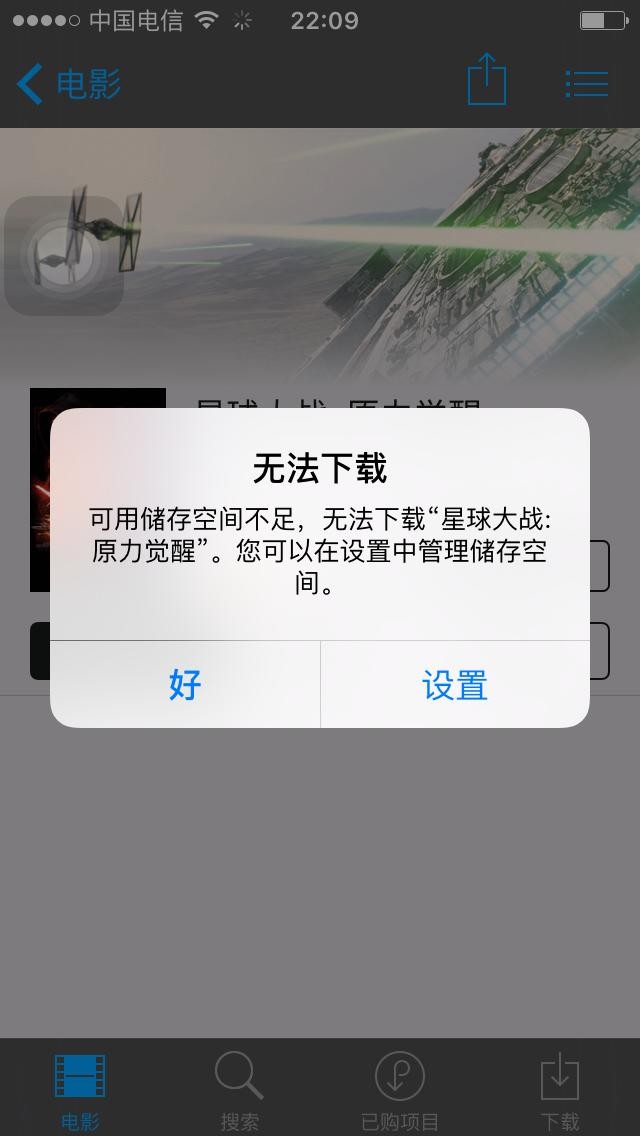 先来看看手机容量还剩多少,204MB,这是有多悲催。按照教程点开iTunes Store,选择一部容量大的电影。