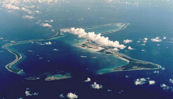 迪戈加西亚岛 是印度洋中部查戈斯群岛最大和最南端的珊瑚岛,是英属印度洋领地的一部分。人口约3500人,全岛为向北开阔的V字形珊瑚环礁,岛屿面积27平方千米,中央潟湖长24公里,宽6.4公里,礁盘面积174平方公里。