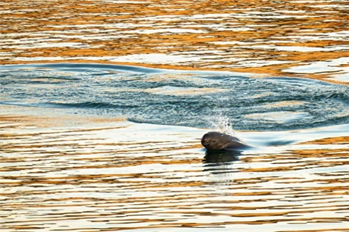 1月5日,长江江豚在长江宜昌葛洲坝下游附近踏浪前行,与浪花共舞。新华社记者 肖艺九 摄