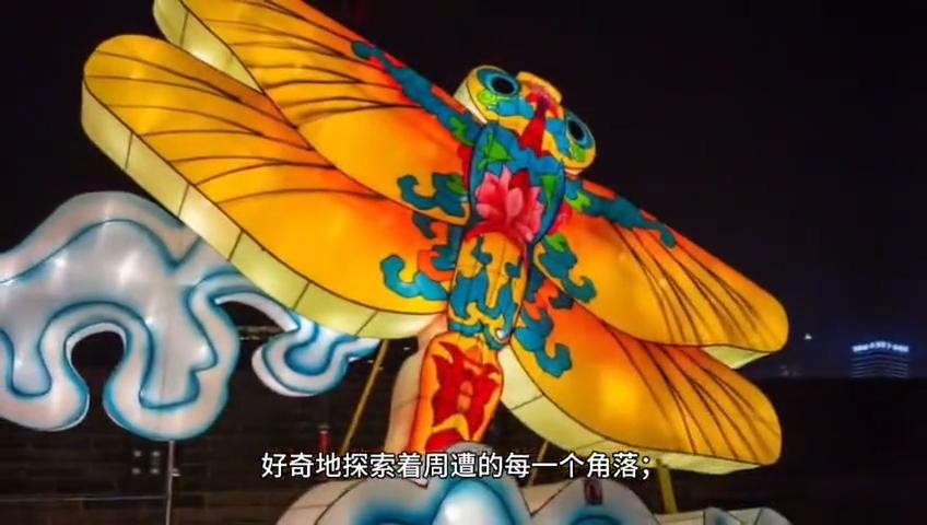 7. 漫步街巷,各式灯笼争奇斗艳,蝴蝶灯笼轻盈旋转,蜻蜓灯笼演播流转,蝙蝠侠花灯充满童趣与神秘。