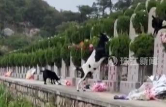 广东一墓园祭拜鲜花被山羊偷吃,工作人员:羊跑太快,赶走了又回来,社区回应