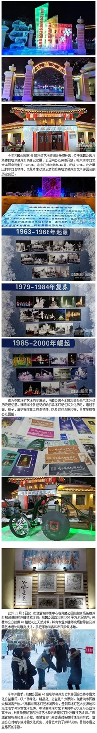 倾情冰雪季【想了解哈尔滨冰灯的由来 就来兆麟公园八角楼】作为中国冰灯艺术的发源地,今年兆麟公园首次举办哈尔滨冰灯历史记忆展。本次冰灯艺术展征集并展出哈尔滨冰灯各个年代的老照片400余幅,还有制作冰灯时曾使用过各式老工具和70余件历届冰灯游园会的门票,以及各种冰雪旅游纪念品。