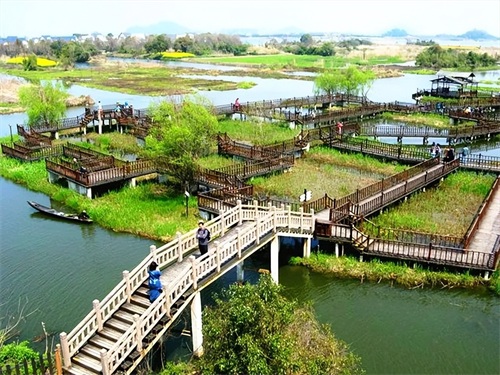 “德清洋家乐” 位于德清西部的低山区, 主要山脉为天目 山余脉, 分南、北、 中三支, 海拔 700 米以上的山峰有 5 座, 莫干山周围群山连绵, 植被覆盖率为全国所罕见。该地区属亚热带季风气候, 温暖湿润, 四季分明; 由于地形复杂, 地势落差大, 立体气候资源丰富。野生动植物种类繁多, 如有国家级保护植物南方红豆杉、 银杏、 榧树、 花榈木、 黄皮树等; 已发现野生动物7 大类 1492 种; 县内已知的国家一级保护动物 2 种, 分别是朱鹮 ( 见图 2)、白颈长尾稚; 国家二级保护动物 11 种, 穿山甲、 河麂、 鬣羚等。