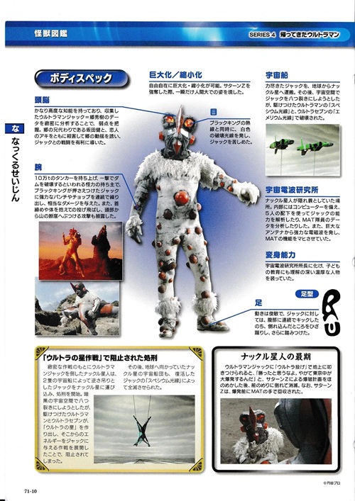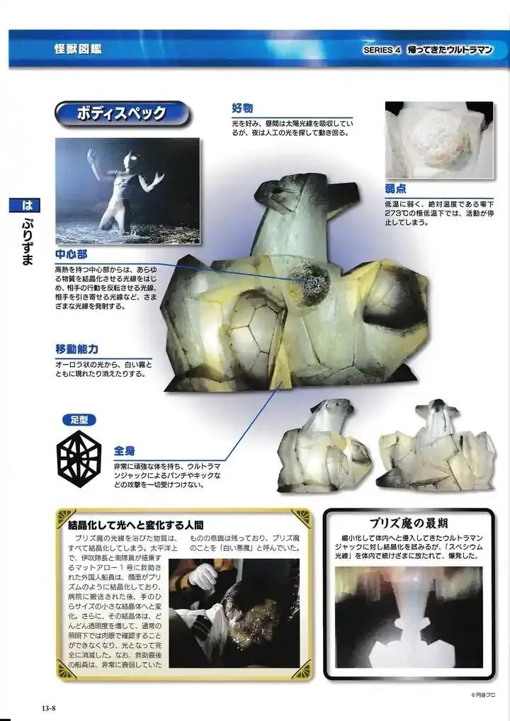 出生并生长于南极的冰盖中,长期被关在南极厚厚的冰层下面,但是受到太阳黑子变化的影响而再次活动。因为以光为能量,白天隐藏身姿吸收太阳光,一到晚上为了寻求光而行动。和它的外表一样,是个无法得知其真面目的怪兽。最后,乡秀树决定进入怪兽内部杀死怪兽,遂变身杰克并被怪兽吸入体内,由于怪兽体内非常冷,杰克拼尽全力使出「斯派修姆光线」导致怪兽体内急剧的热膨胀而破裂。