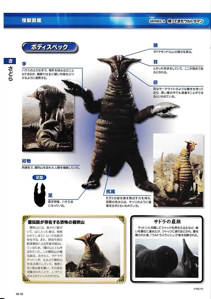 记录于MAT档案中,和地底怪兽泰莱斯通属于同类型的怪兽,体型相对较小。和怪兽萨德拉一同栖息在常年浓雾笼罩的雾吹山中,利用浓雾狩猎,也时常相互争斗。在杰克·奥特曼出现时,曾和萨德拉联手对战奥特曼,最终被杰克的斯派修姆光线杀死。